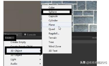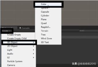 6、我们用一个小案例,来做一个简单的小游戏。点击unity的创建,创建一个正方体,作为地面。