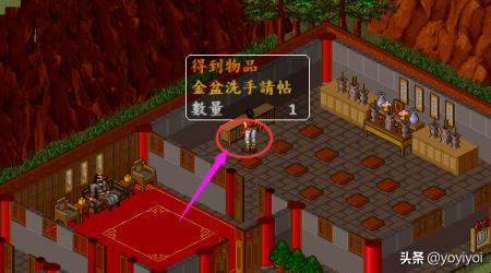 3、然后到衡山(使用洗手贴进入踢馆)——华山(对话岳不群)——恒山(踢馆)——嵩山(打败左冷禅后如图位置获得率意帖)。