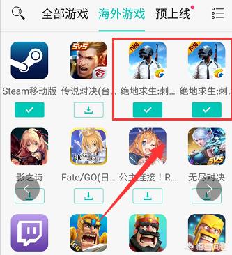 进入海外游戏就可以看到两个版本的海外版本了,点击下载即可,如下图所示
