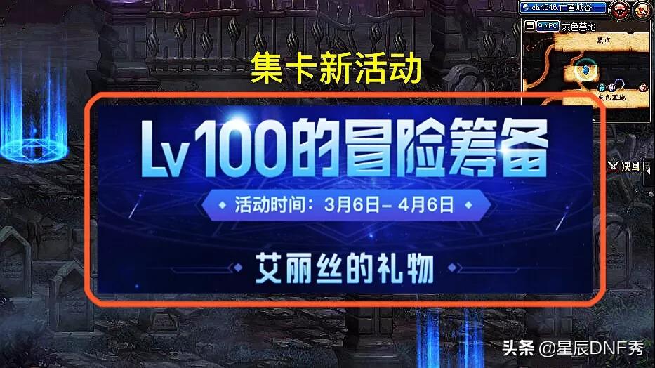 DNF100级版本定档3月19日,策划在游戏内外都是开始了各种预热活动,诸如游戏内的100级版本倒计时,每天送一个新深渊门票礼盒;游戏外的预热活动也在如火如荼的进行中,其中,最受玩家关注的就是新一轮的集卡活动:Lv100的冒险筹备,活动时间3月6日到4月6日!