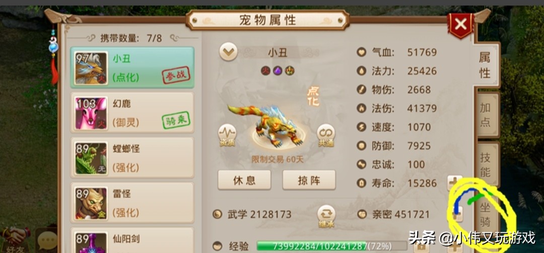 我们点击宠物头像以后会进入宠物的界面。然后我们再点击我们右边的选项坐骑。