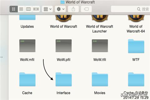 3.如果当前电脑也连接上网络,魔兽世界服务器运行也正常的话,这时有可能是插件导致不能正常登录。个人在 Mac 电脑中玩魔兽世界时,就是因为安装了插件导致不能正常登录。这里以 Mac 系统为例,在 /Applications/World of Warcraft 中找到Interface目录,点击打开。