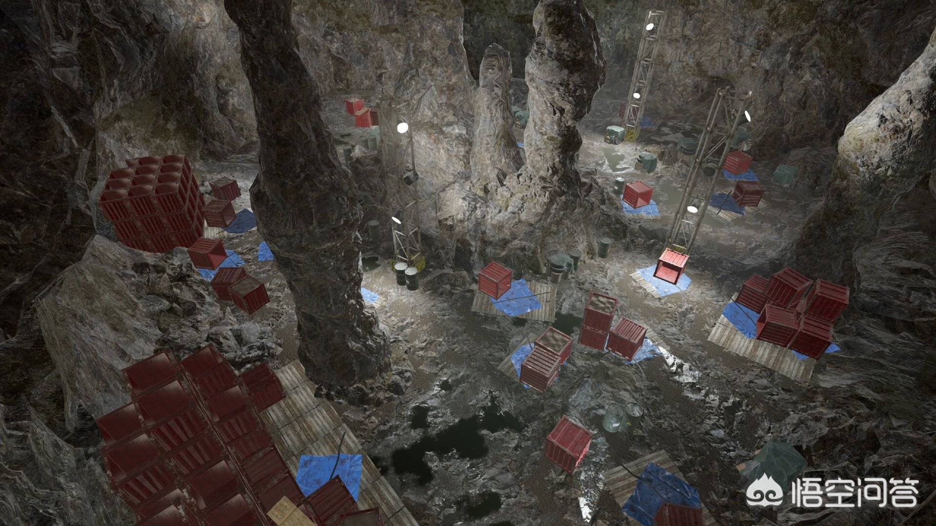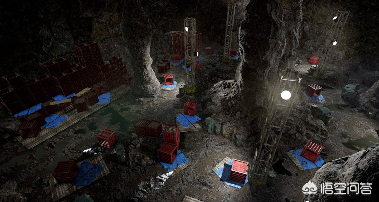 建议乘车前往 ,可以使用车辆撞开洞口的岩石进入。防空洞内有丰富的物资,洞穴中间是空投箱的放置位置,这里刷新的物资非常丰富。