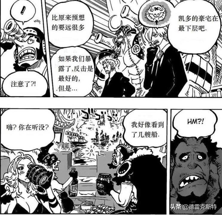 在《海贼王》漫画978话中,我们的狙击王乌索普又立了一个奇功了,讨伐凯多大军已经到了鬼之岛的门口, 但是在鬼之岛前面的哨站中有几个小喽啰负责守卫工作,但是在鬼之岛中,凯多海贼团的众多成员基本都在喝酒吃肉当中。