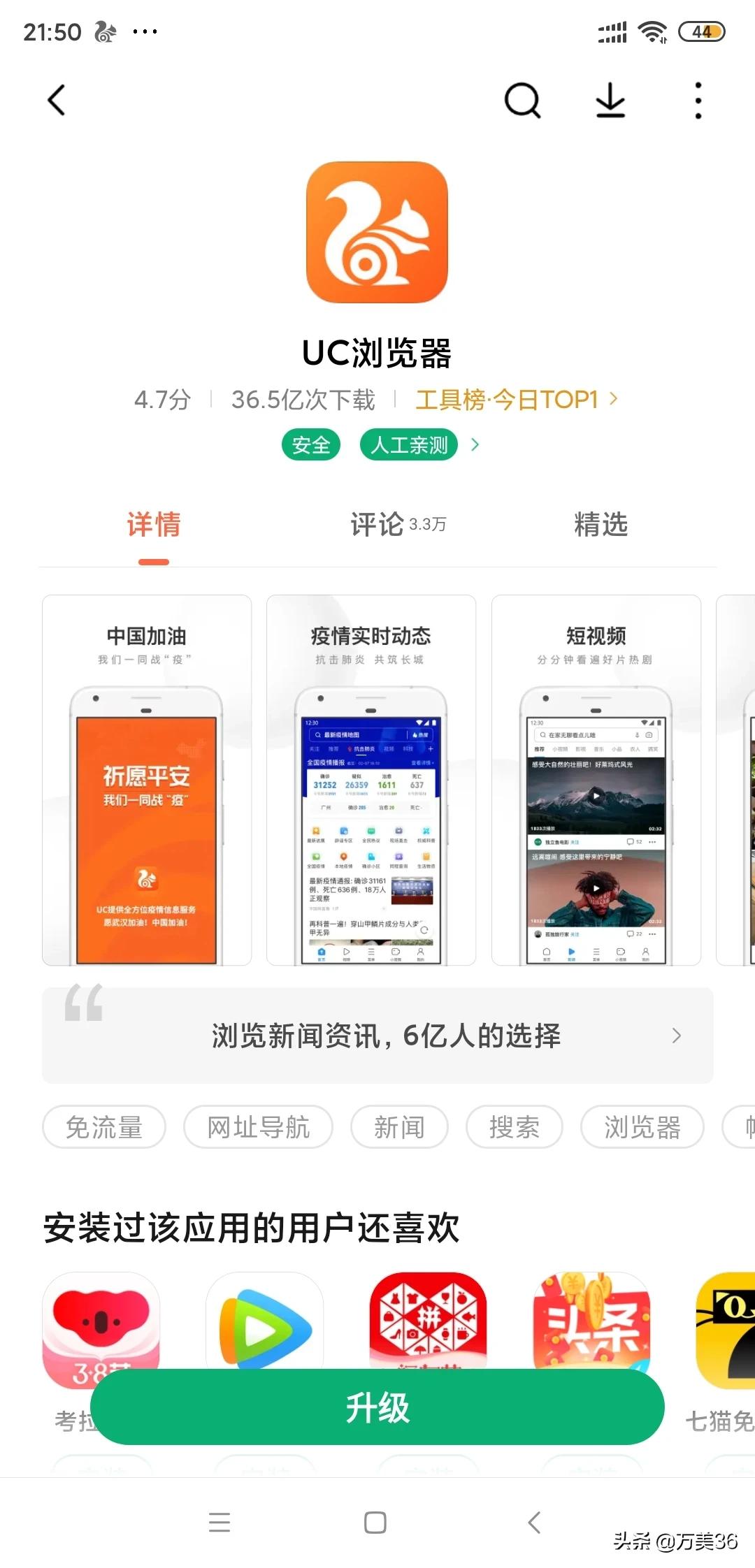 手机搜索一般都用百度和UC浏览器,但百度广告太多,我不太喜欢用百度。UC是一个老的品牌,记得十几年前还有UC号聊天,和QQ号一样。后来败给了QQ,聊天软件没有发展起来,然后UC就专注发展手机浏览器,得到了很多用户的喜爱。