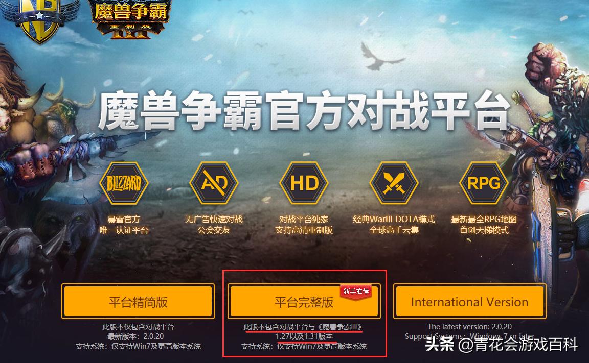 下载的时候请选择中间的“平台完整版”,这个版本包含了《魔兽争霸3》游戏本体的1.27和1.31版本。