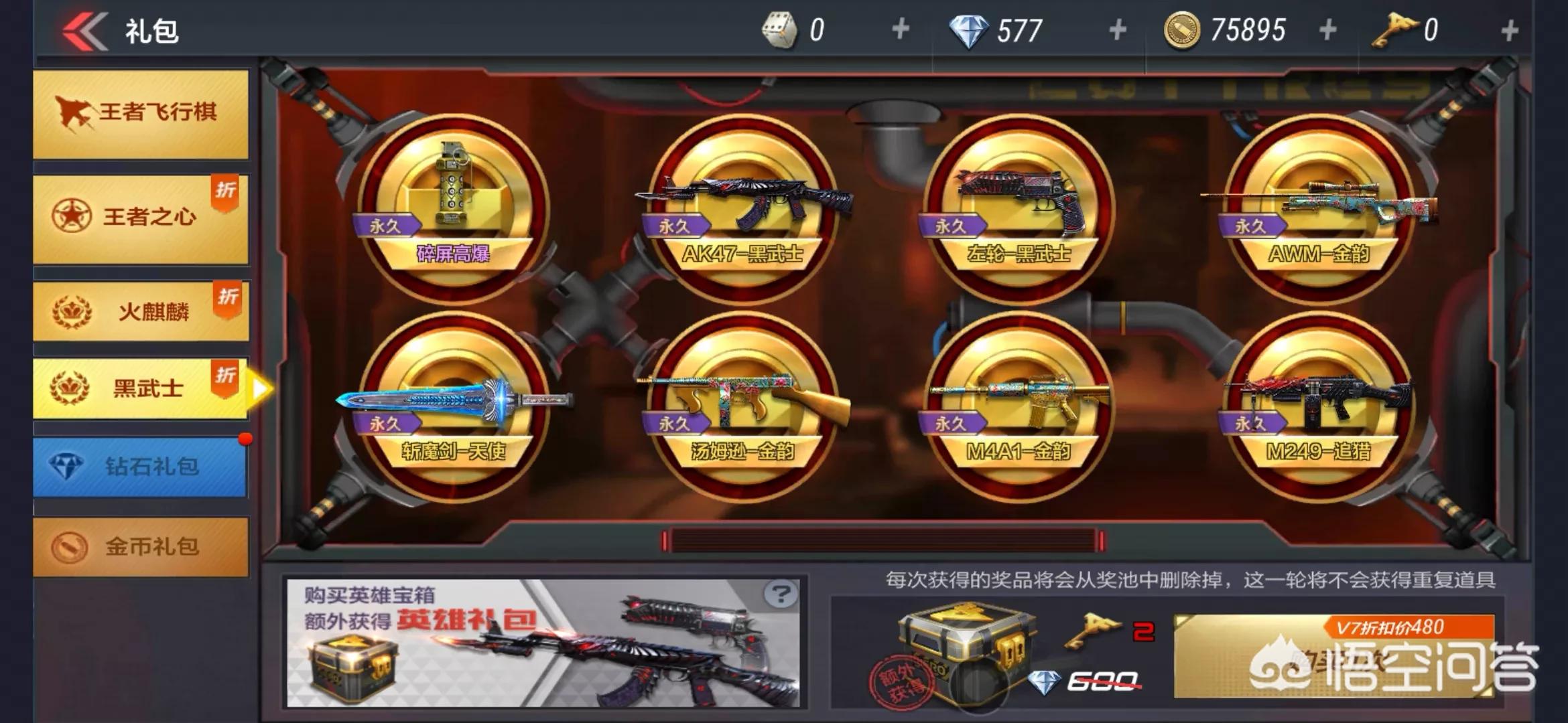 首先我们来谈谈AK47黑武士的获取方式。是从英雄礼包中抽取的,需要1万6左右的钻石加上16把钥匙!