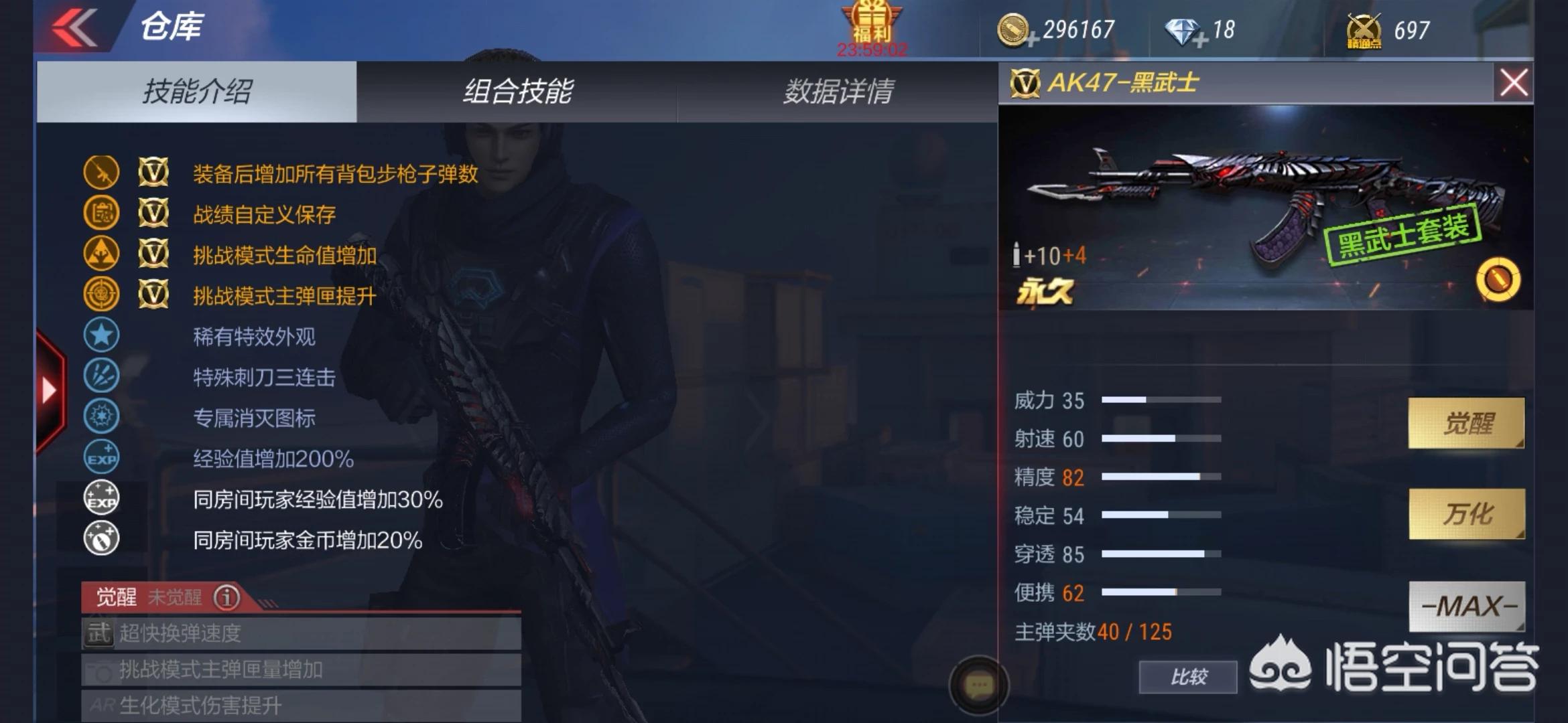 我们来谈谈黑武士的性能方面,威力35,射速60,精度83,稳定54,穿透85,便携62。