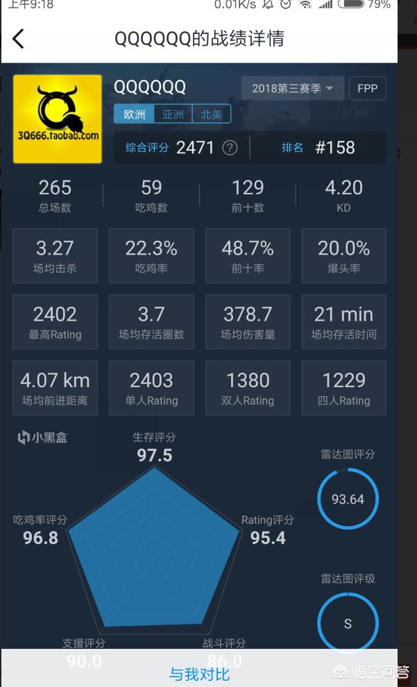 具体看看,QQQ平时直播都是单排为主,这个号也是打了很久了最近一直在充分,单排分数2403,排名欧服第二十四名,吃鸡率22.8%,KD4.25,很多人看数据会觉得他是外挂,其实我觉的并不是这样的,QQQ的玩法就是老YB的玩法,依靠听声辨位和苟上分,但是他的实力是真的强!可以学到很多东西,另外他擅长喷子和伍兹,不带狙击枪!这是他主要的特点!这个号双排和四排没怎么打,最近一两个月都是在冲分。