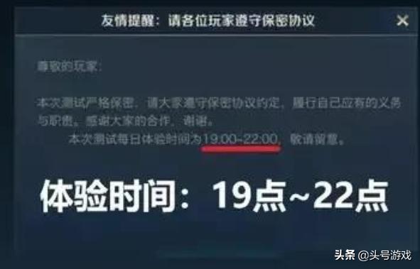 在游戏界面过程中官方还提醒各位玩家要遵循保密协议,体验时间为每天的19:00~22:00,也就是说每天只有三个小时,正常来说的话玩游戏三个小时也差不多了,不过要遵守保密协议的话,也看得出官方对于这个方面还是挺重视的,因为毕竟后面是要打造一款全民级的游戏,现在游戏有一些神秘感也很正常。