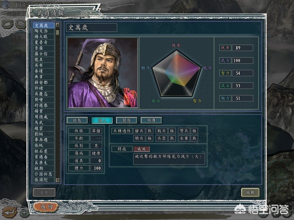 有的武将特技是削弱型的,攻击敌人会使敌将或部队能力下降。比如萧摩诃战法攻击使敌将移位后能让其受伤,而李晟的特技狙击效果更好,有概率让多个敌将负伤,威风史万岁能削弱敌部队的气力,同时也削弱了敌军的攻防,这些特技都蛮适合用来开团。