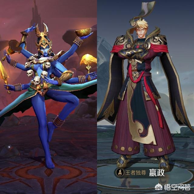 五、左边的英雄如果不说,估计你永远猜不出是对于国服的嬴政。毕竟从千古一帝秦始王,变成了七手八脚的女邪神,任谁也直呼受不了。不过话说回来,女邪神在技能设定上可能比较吻合,毕竟嬴政的大招是55把飞剑凭空飞出,而女邪神可以说是把手里的武器扔出。(想想居然有点可爱??)