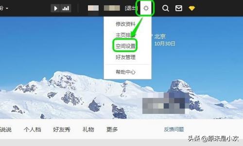 5、在QQ空间个人中心界面顶部点击设置图标,然后选择“空间设置”选项。在空间权限设置页面选择“所有人可见”,然后点击“保存设置”按钮,如图所示。保存修改后,QQ空间刷赞群内的好友就可以访问您的空间,也就可以给您刷赞啦!