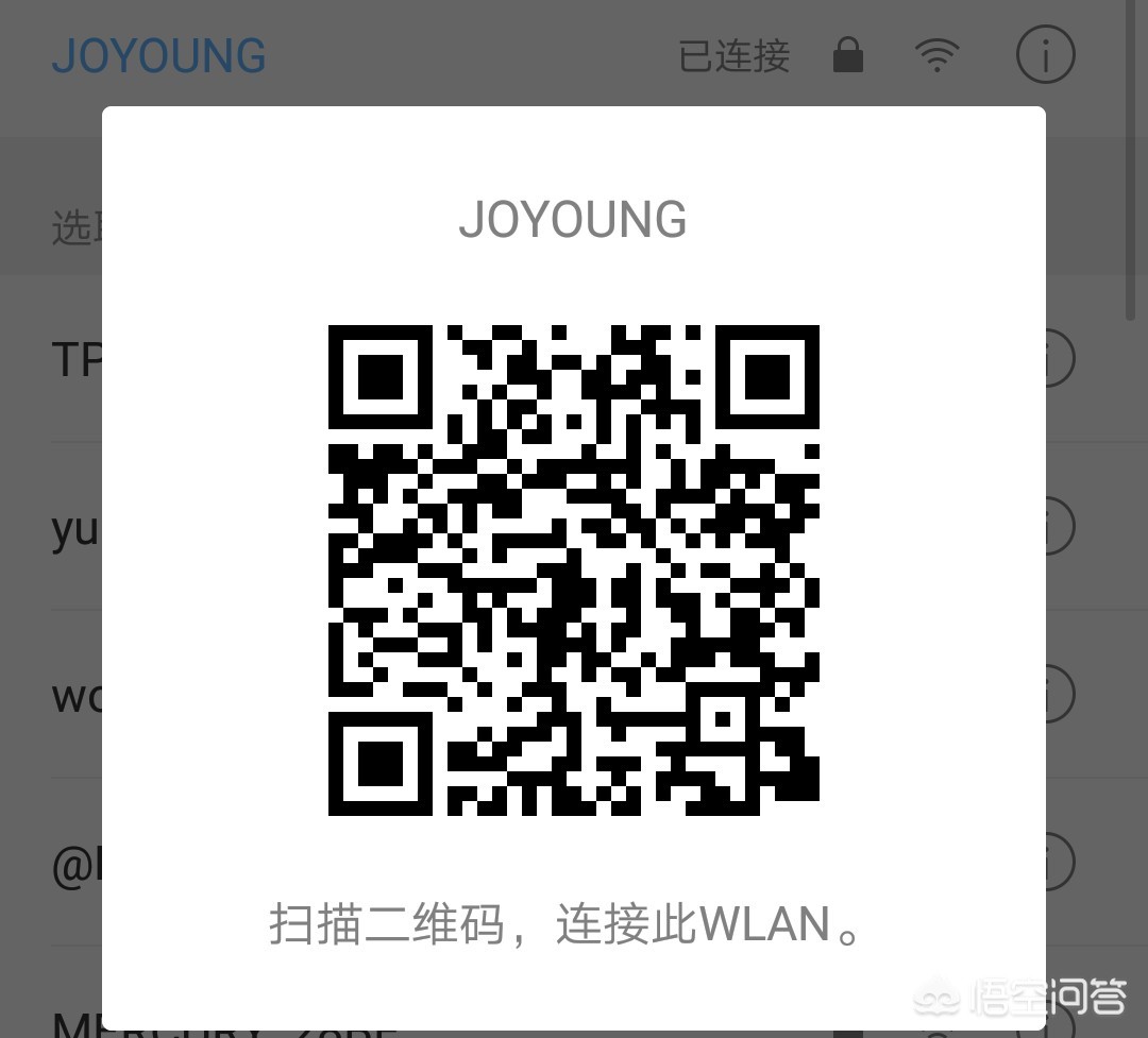 一、使用二维码查看。有的手机操作系统是支持wifi信息生成二维码的,比如小米手机就可以,只要进入WLAN设置,点击连接的WIFI,就可以显示出一个二维码来,如下图,然后只需要用另一个手机微信扫码就可以查看了。