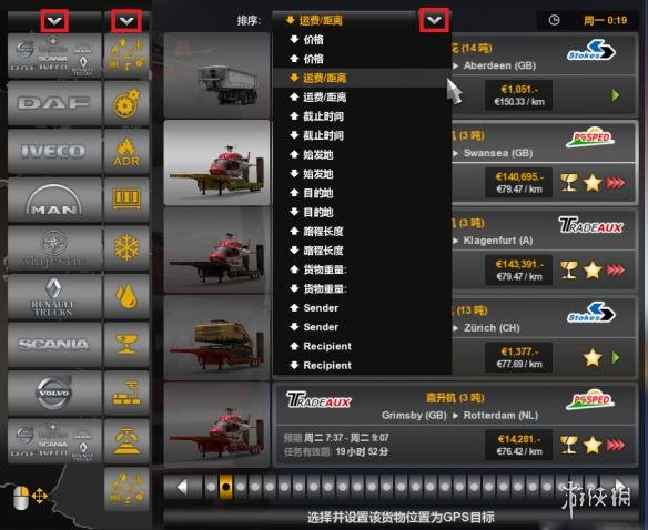 首先到任务市场按照每公里能提供最高奖赏的排序选择运输任务,不用担心没有卡车给你开。