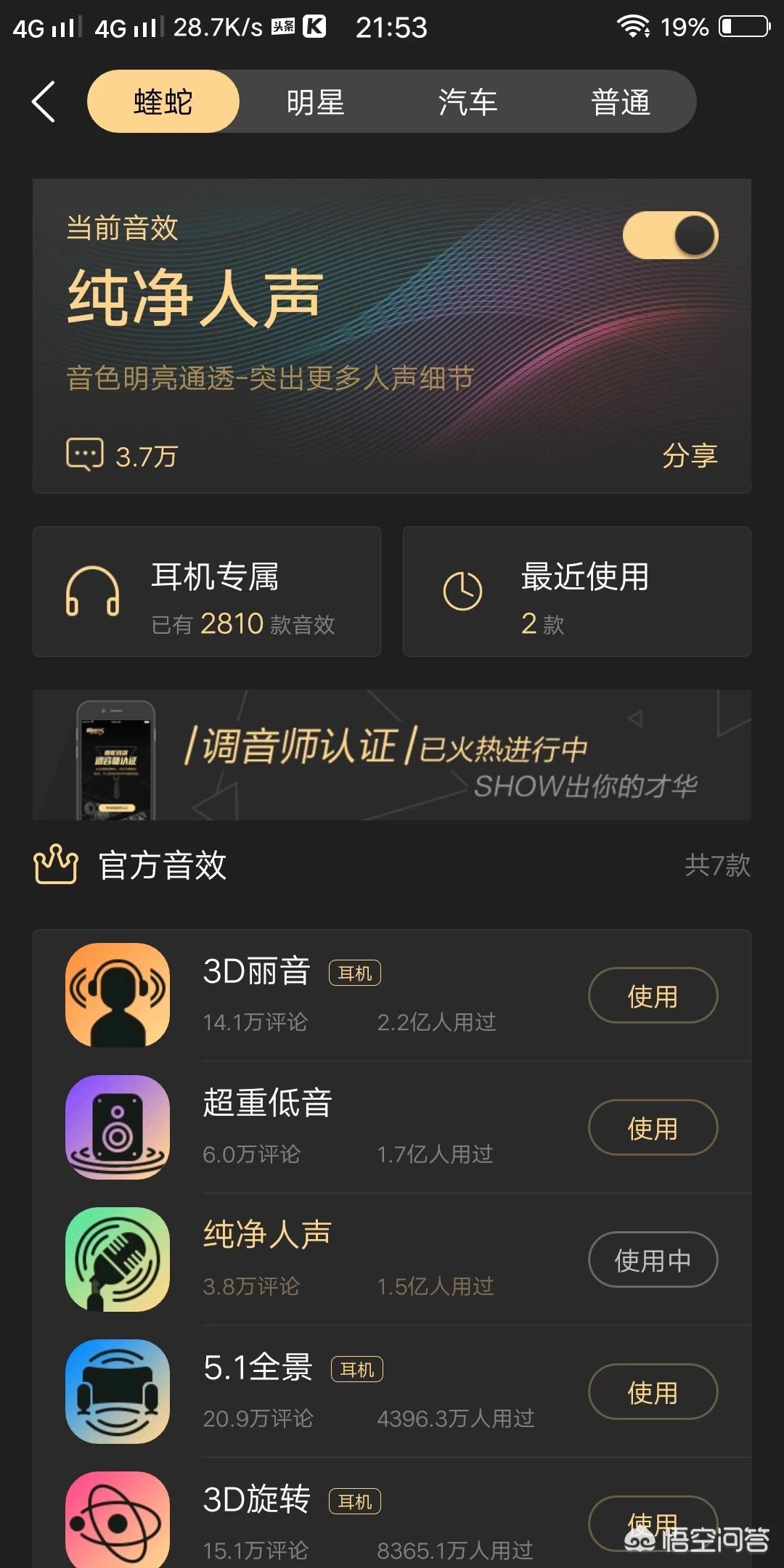 这几个音乐软件我都有三载安装,但用的最多的还是酷狗音乐。在我的体验来看,觉得酷狗音乐的页面挺流畅,能听的歌也非常多。而且我是会员,有更多的皮肤可供我选择,歌曲下载速度也非常快,音效也很棒。