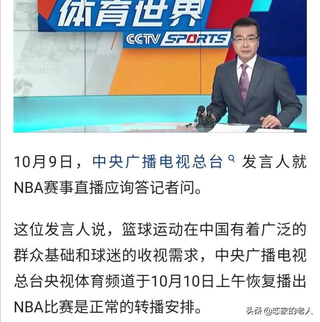 自从去年火箭总经理莫雷事件后,CCTⅤ央视体育频道几乎一年全部停了NBA直播,目前央视决定直播NBA总决赛G5,根据央视发言人说法,央视之所以决定复播的原因有,一,篮球运动在中国深受人们的喜爱,有着广泛的群众基础,和广大篮球迷收视率的需要,二,鉴于NBA一直传达着善意,支持中国人民在抗击新冠肺炎所做出的积极贡献,NBA还在中国国庆和中秋双节时,送来美好的祝福,央视在莫雷事件初,也表态香港是中国內政,容不得别人说三道四,央视也做到了,几乎近一年就没在转播NBA