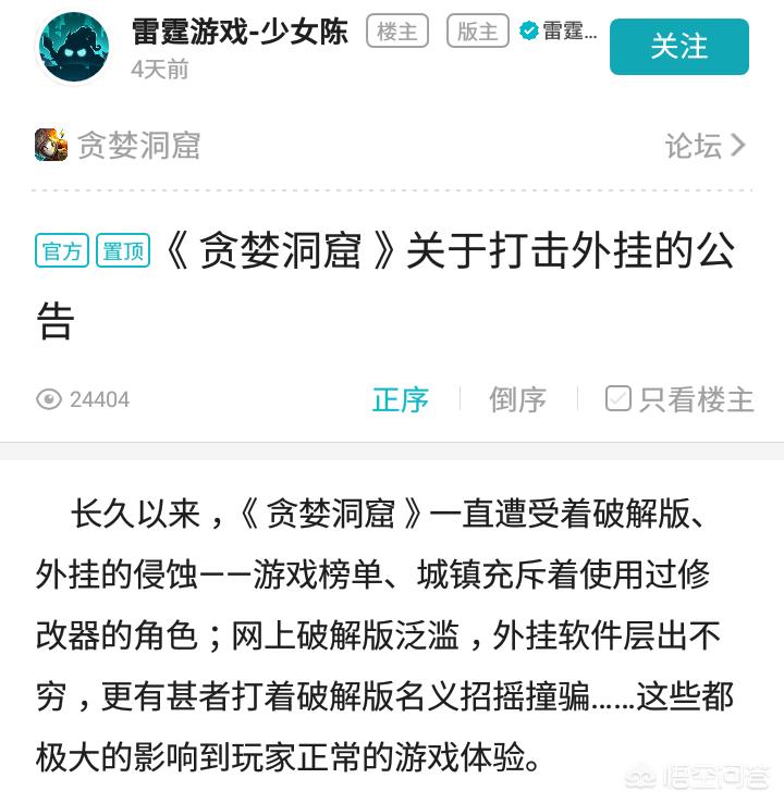 其实这在很多玩家看来并不重要!最重要的便是外挂!作为一款类似于单机的网络游戏,排行榜对于玩家来说非常的重要!曾经的贪婪洞窟因为外挂纵横,排行榜全是用外挂刷的!对于土豪玩家来说没有了乐趣,平民玩家来说自然就想开挂!简直就是在比谁的挂刷的快!刷星级装备,刷成就!