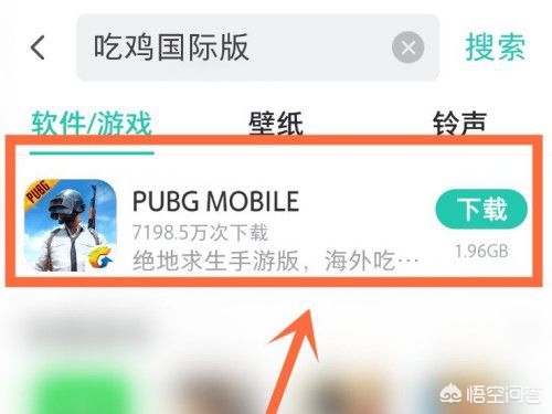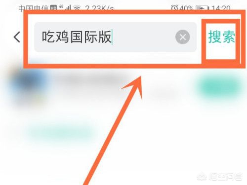 之后,在搜索栏内,输入【吃鸡国际版】,并点击后面的【搜索】进入。如下图所示