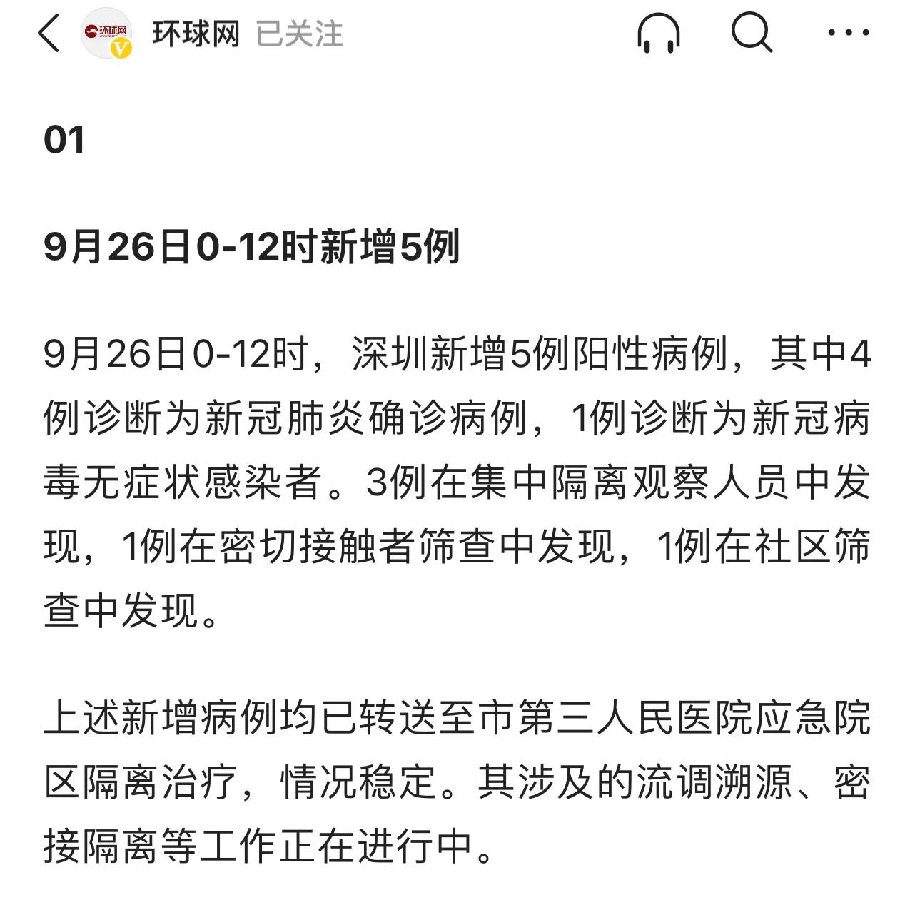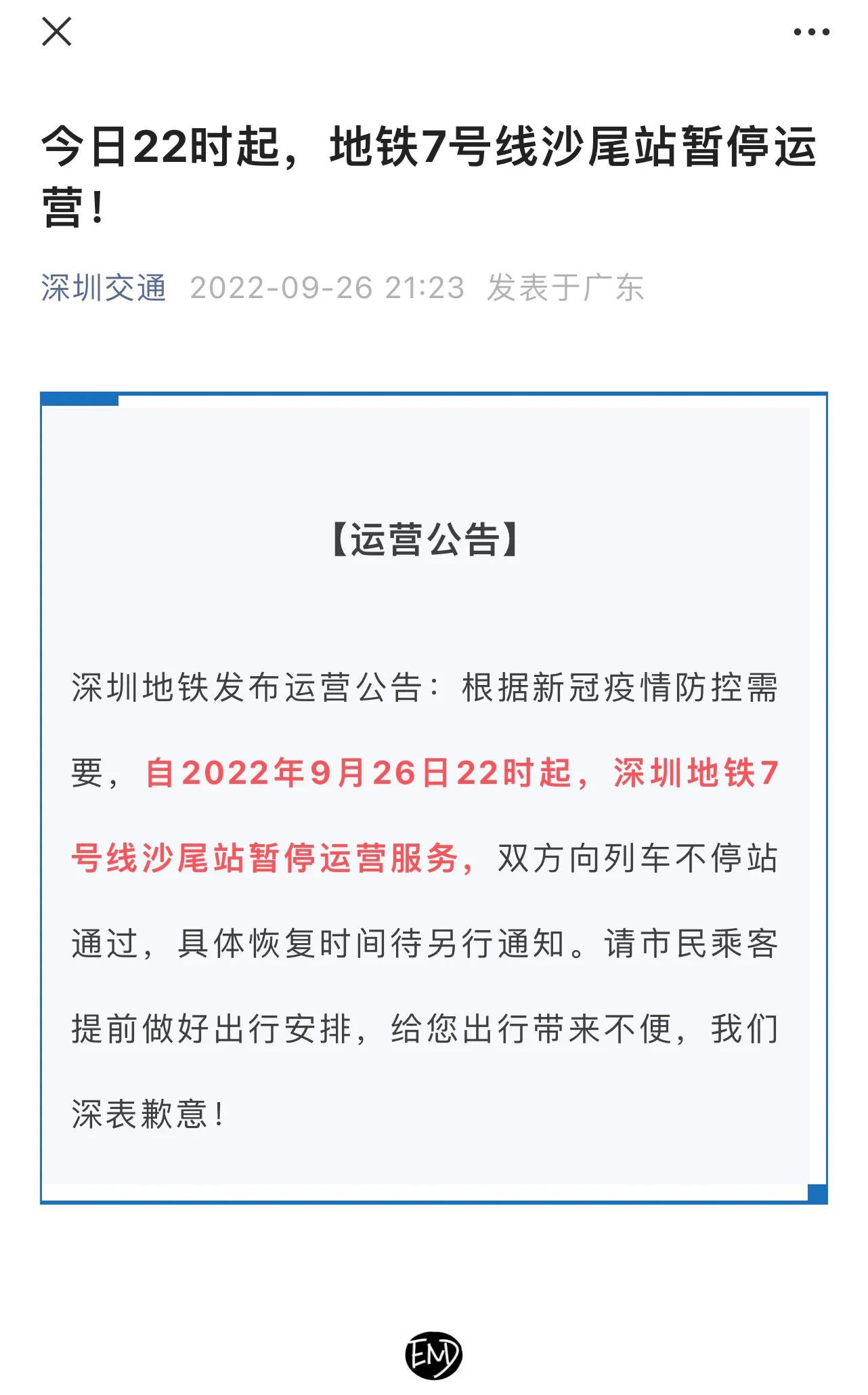 9月26日0-12时,深圳新增5例阳性病例,其中4例确诊,1例为无症状感染。疫情一来,交通先行管控,7号线沙尾站当天也暂停运行了,请大家注意交通信息,免得耽误上班时间。