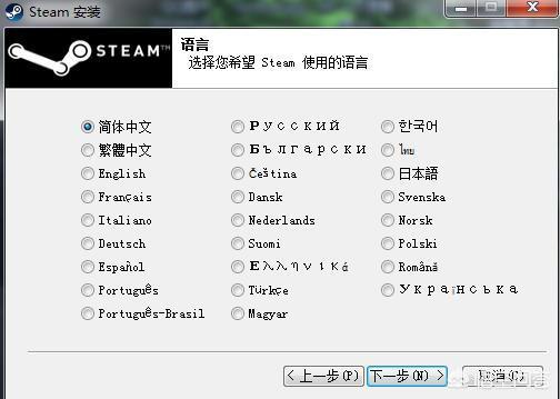 3.steam语言选择根据需要选择安装语言,点击“下一步”;