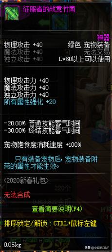 在这三种宠物装备中,提升最大的就是就要属绿色这个部位了,今年的绿色宠物装备增加40三攻,20全属强以及-20%的普通技能蓄气时间和-30%的终结技能蓄气时间,无论是伤害提升还是恢复宠物的普通/终结技能都是最强的存在。