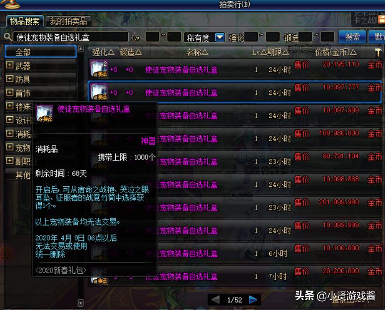 一个宠物装备礼盒800W游戏币(跨六),这样的价格,难道还要去做三选一吗?反正小欧很定是不会去做选择的,缺几个宠物装备就购买几个宠物装备礼盒。对于萌新玩家来说,春节礼包中选择一个宠物装备,之后在拍卖行上面购买一个宠物就行了。