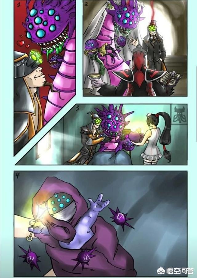 第三,武器大师其实是剑圣的儿子??这个图不知道是哪个鬼才玩家制作的,不过挺有意思,剑圣和老版本大龙眼睛都很多所以生出了眼睛很多的武器大师,然后大龙是紫色的,好像没什么毛病。
