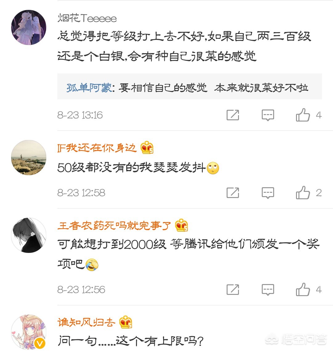 不过很多网友表示如果等级打上去了,段位却上不去,会有种自己很菜的感觉。 网友:可能想达到2000级,等腾讯给他们颁发一个奖项吧!
