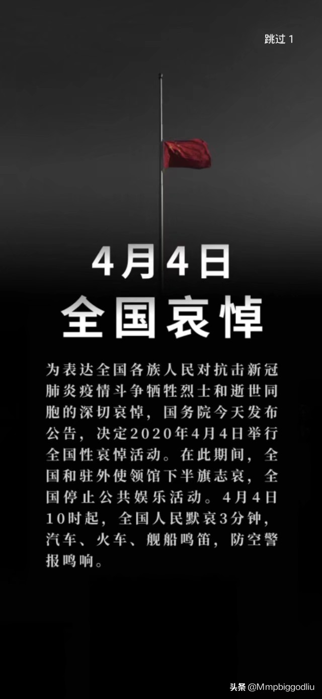 在这个沉重的日子里,不应该是充满娱乐气息的一天。一批又一批的白衣天使,远赴武汉,救治了一批又一批的新冠肺炎感染者。他们用自己的身体,为为祖国,为人民撑起了一片天。一些无辜的人民,被新冠肺炎夺走了生命。尊敬的白衣天使,部分因感染新冠肺炎失去生命。所以我们在今天,全国人民沉痛哀悼抗疫中牺牲的烈士和逝世同胞。今天十时,我们向抗疫中牺牲的烈士和逝世的同胞默哀。也激起了我内心强大的爱国之心,以后定向白衣天使学习,不断报效祖国,报效人民。