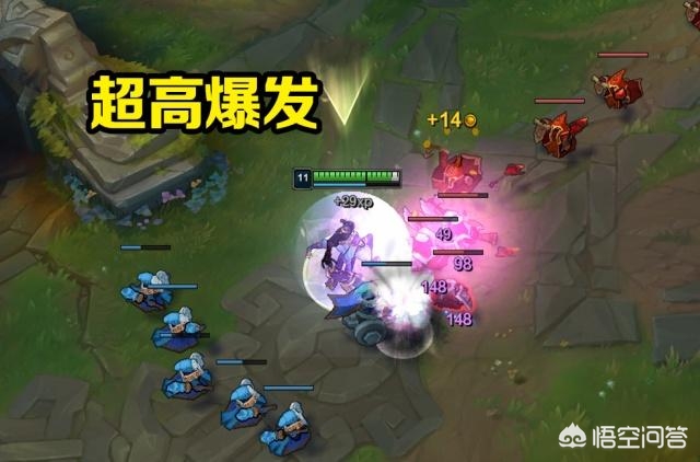 操作灵活,输出极高,我有一局碰到了一个剑姬简直被打到自闭,完全是越塔强杀的去收人头,防御塔不要面子的啊!