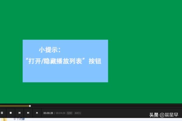 7、播放列表的开启:右击播放器右下角的“打开/隐藏播放列表”按钮,就可以打开或者隐藏播放列表了。