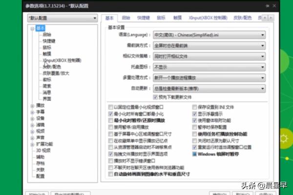 6、播放器皮肤的更改也在这个界面进行,点击“基本”,点击“皮肤/配色”,可以从其扩展面板中使用其他皮肤。