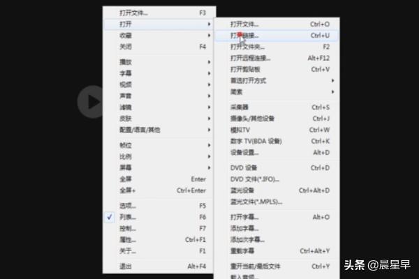 1、播放视频的方法:右击播放器窗口,在弹出的菜单中依次选择“打开”项,此时将展开打开子菜单项。