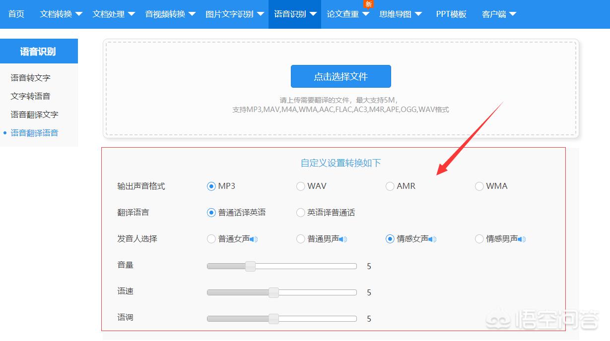 步骤三、先是从待翻译操作页面中设置所需要的参数,例如这里我们可以设置输出声音格式/翻译的语音/发音人的选择等等参数。