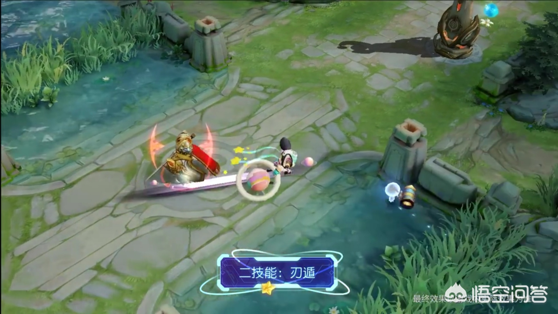 阿技能的一条辊痕的颜色也是非常的明显,这个特效真的很好看,而最有意思的就是在释放这个技能的时候,李元芳后面的两条飘带非常的好看,因为上面还附着着两个星星。