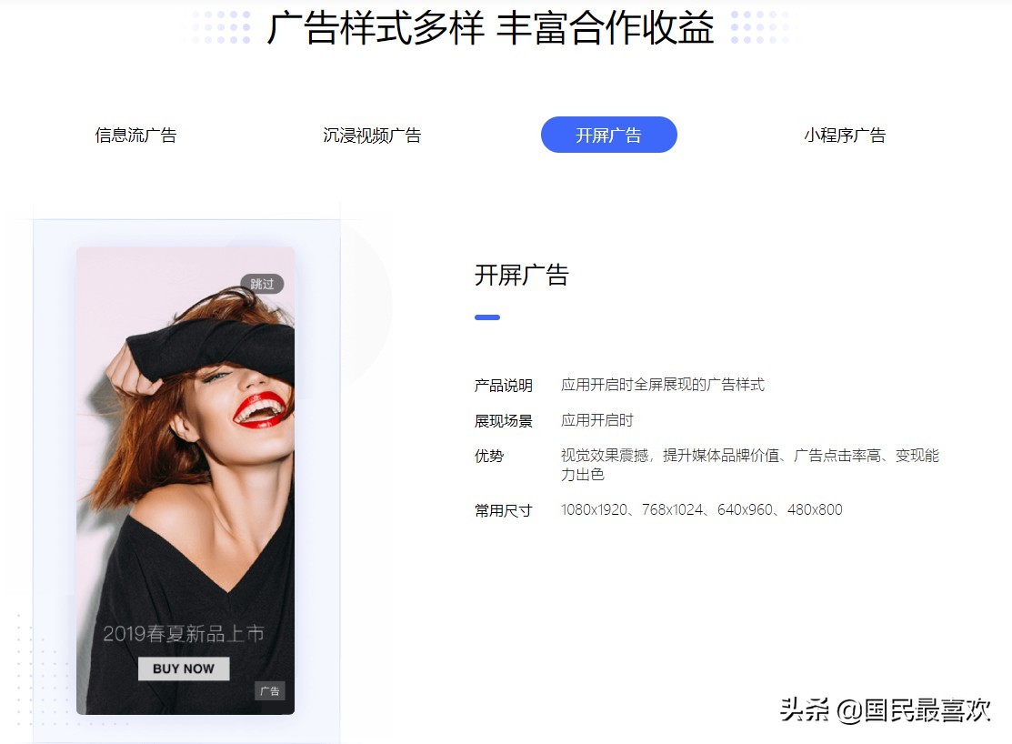 广告模式挺多,包括app常见的开屏广告: