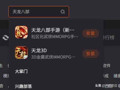 2、接下来,我们在腾讯手游助手的游戏搜索处输入天龙八部字样。
