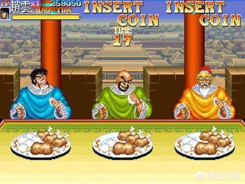 《吞食天地》(也叫三国志)是日本卡普空制作的,一款以三国时期为背景的横版街机动作游戏。该作包含5名角色供玩家选择,由于这款游戏发行时间较早,玩法并不是特别丰富,主要依靠普通打击与武器攻击(平A),部分角色有特殊攻击,还有损血换来强大攻击力的“大招”。尽管游戏画面、语音、手感等方面不如《三国战纪》,但是还是有一批玩家喜欢这款游戏。让人印象深刻的一个画面就是在过关之后,玩家需要快速拍打按键来“吃包子”。