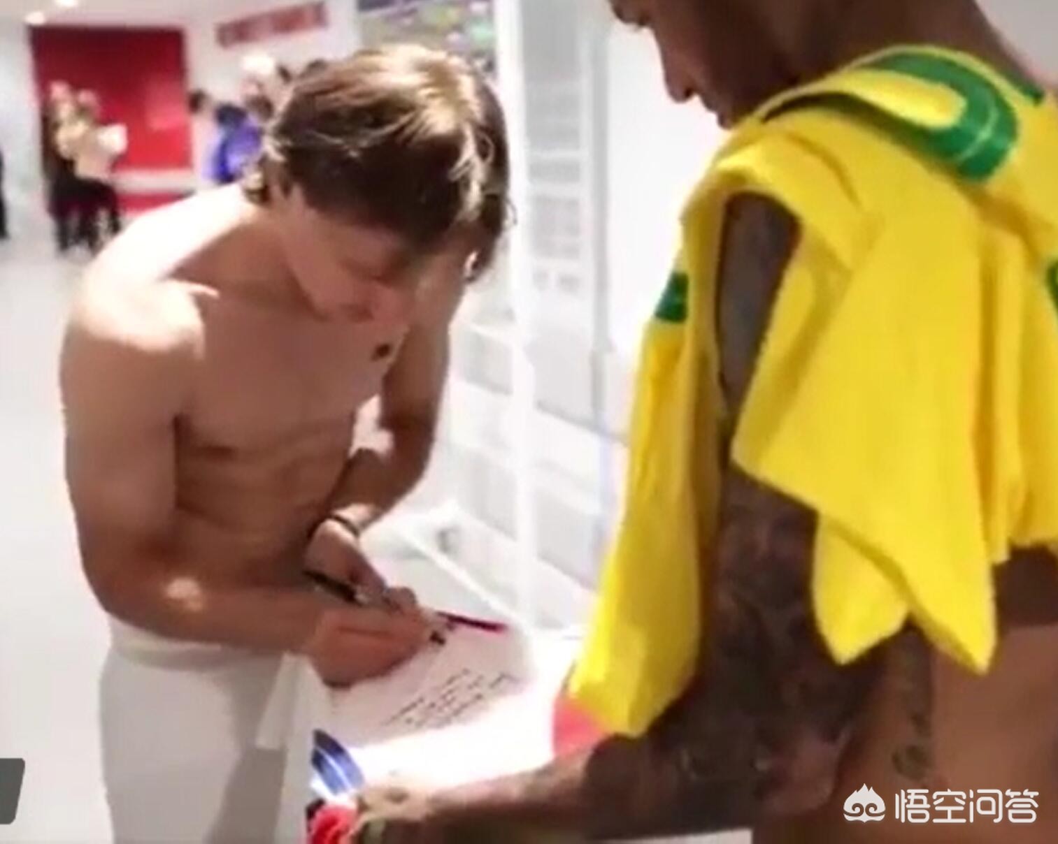 因为内马尔在受伤之后“自强不息”的破门,克罗地亚头号巨星莫德里奇在赛后也找到了巴西天王。两队最大牌的球员不仅互换了球衣,还在球衣上相互签名。