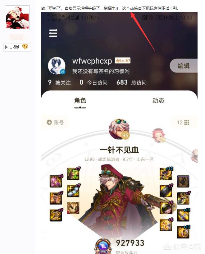 以前的助手上不显示具体的装备属性的,而现在不仅增加了增幅强化的等级,而且还可以直接看到实际装备的品级高低,当然了,这也有好处,就是可以非常具体的看到你和大佬的打造差距在哪儿了。