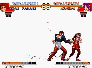 整个无限屑风的操作是这样,先屑风一下,然后使用鬼步走到对手跟前,马上按一下重拳,然后再屑风拉回来,再次使用鬼步接近,再次重拳屑风循环,6拳就可以打晕对手,练习的时候最好选择麻宫雅典娜或者草薙京作为对手,这两个人最容易用无限屑风,并不是所有的角色都能这么玩,像是大猪,猴子,就很难或者根本连不上,而且实战中也不让无限连。