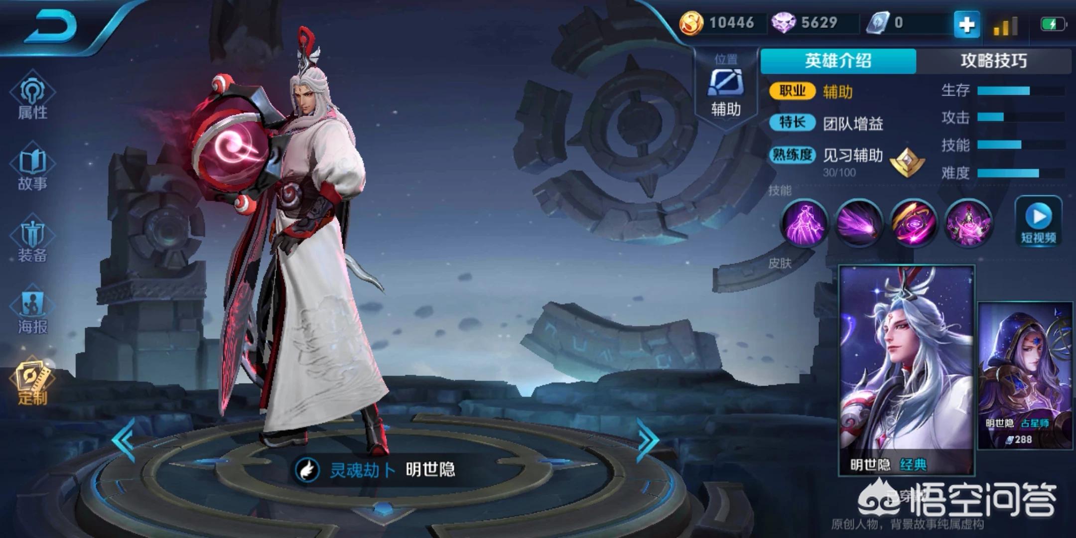 第一位英雄就是明世隐,这位英雄无论是上限,还是下限,都是比较低的,在一般情况,只要有就能拿,拿了谁都会用,能牵的英雄也多,而且可以说是低风险高回报的一位英雄,因为这个英雄可以加攻速、加暴击率,不时的回血,可以说真的很厉害,所以说,在后续的过程当中,天美肯定会对这个英雄进行一些削弱的。