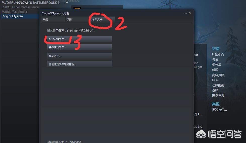 1.打开steam,单击“ring of elysium”后右击鼠标,点击属性