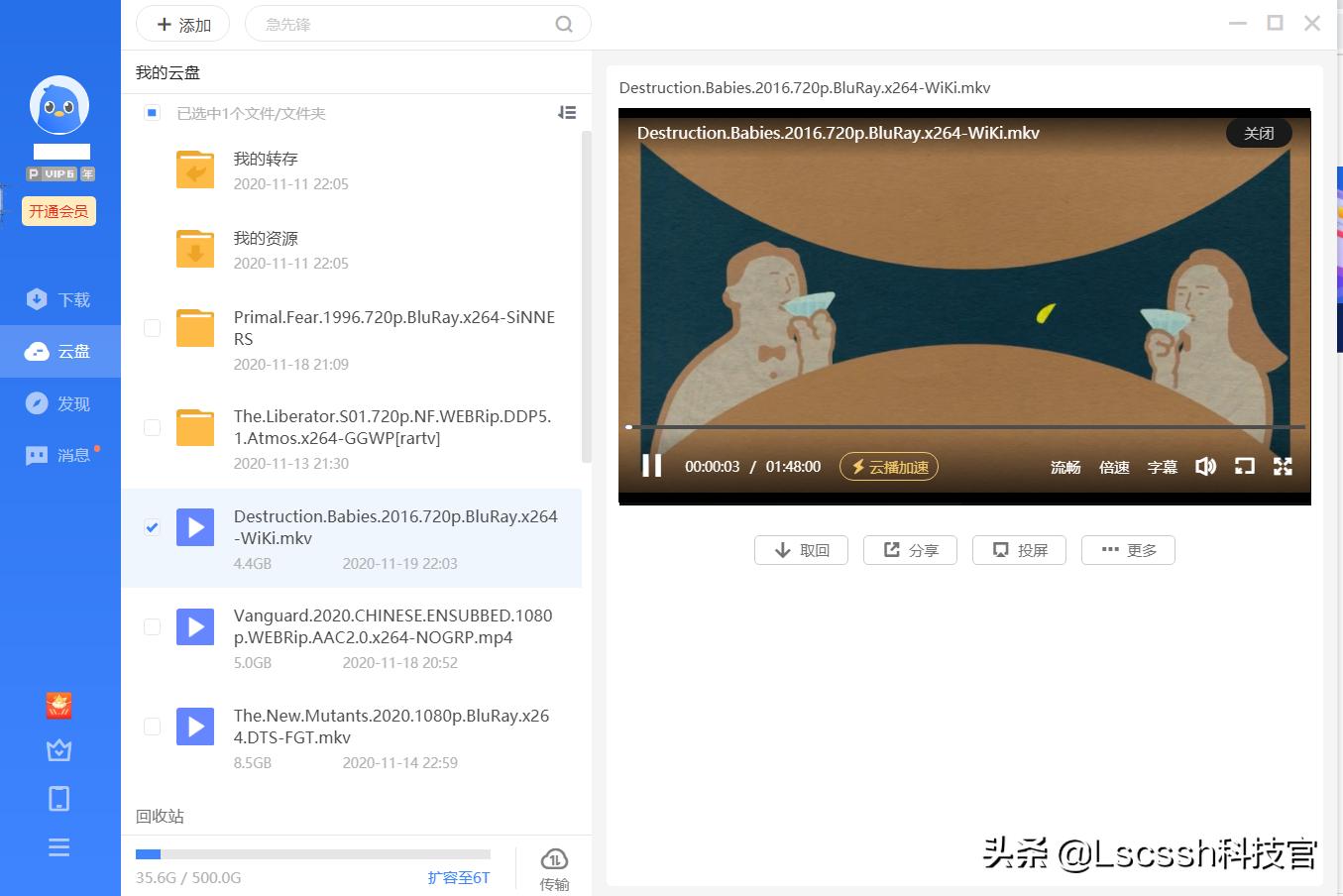其实,我们可以直接将磁力链接添加到迅雷11中下载,然后进行在线播放。目前迅雷11界面非常干净,并且可以不需要下载回来也能在线看,直接保存到迅雷云盘(类似之前的离线下载)后就能在线播放,可以小屏也可以全屏播放。