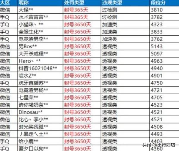 这四种封号里有分别是过检测、加速类、透视类和自瞄类。