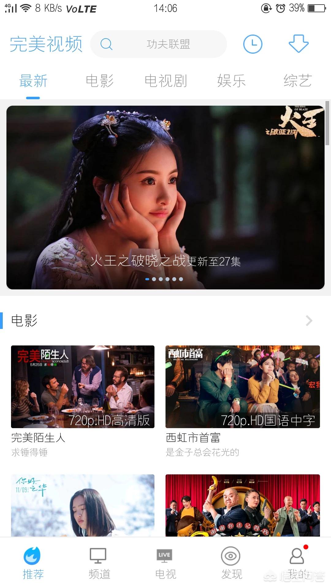 完美视频大全,内有优酷,爱奇艺,腾讯视频,搜狐,PPTV等等多个视频平台的超清资源,无广告,可以缓存,并且有很多最新电影的枪版资源,如果没有你想要的功能,还可以申请求片,基本很快就会上传资源,并且还有TV版供你使用