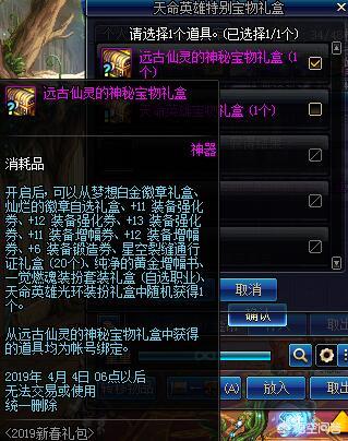 买春节套礼包包含两个宝物礼盒,一个是随机获得道具的神秘宝物礼盒,另外一个是自选宝物礼盒,对于这两种礼盒如果身上没强化想要打红字建议在自选礼盒选红字书性价比最高,如果是强化过的装备想要强打书或者博人品想要+12钻石增幅卷可以选择神秘宝物礼盒,PS:我选的是随机礼盒只为强打书。