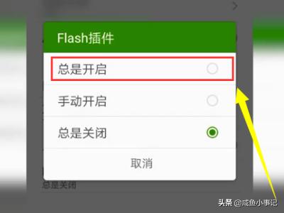 2、在“通用”界面,点击“Flash插件”,点击选择“总是开启”。
