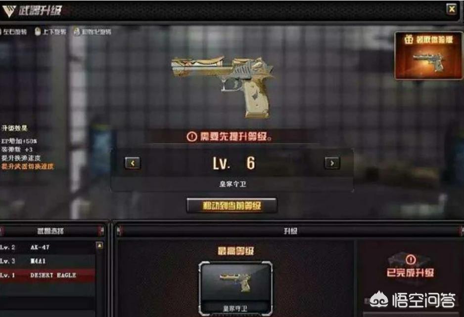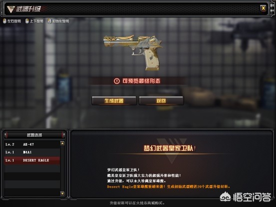 1级的沙鹰守卫和普通的沙漠之鹰只改变了名称,这一步只需要解锁升级系统。